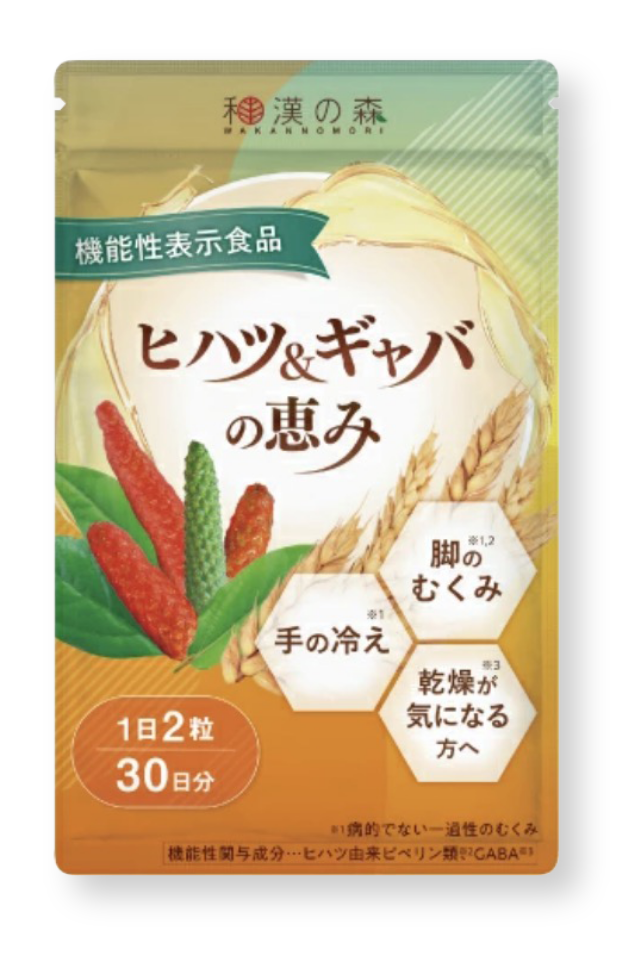 中でもヒハツ由来ピペリン類という成分は脚のむくみ※と手の冷えを軽減する効果が認められています。ヒハツ配合のものを選びましょう。