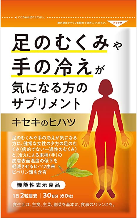 冷えに悩む人の体の内側からサポートしてくれるサプリメントです。夏でも冷房で手足が冷えがちで、夕方の脚のむくみが気になるので飲み始めました。